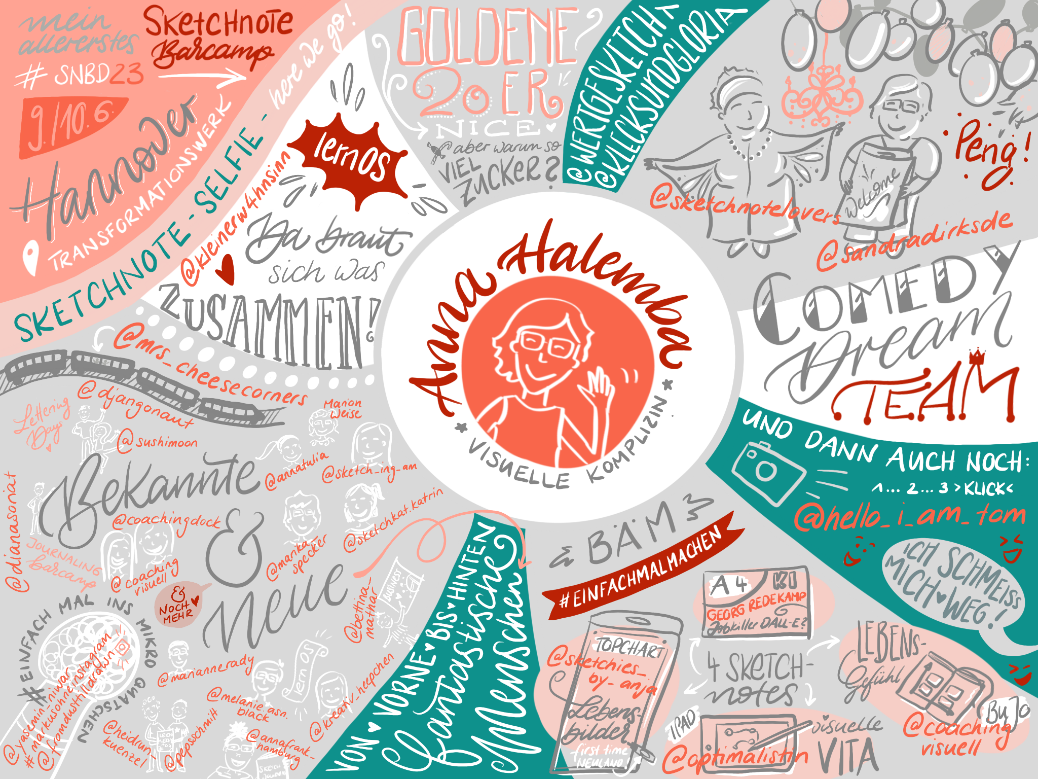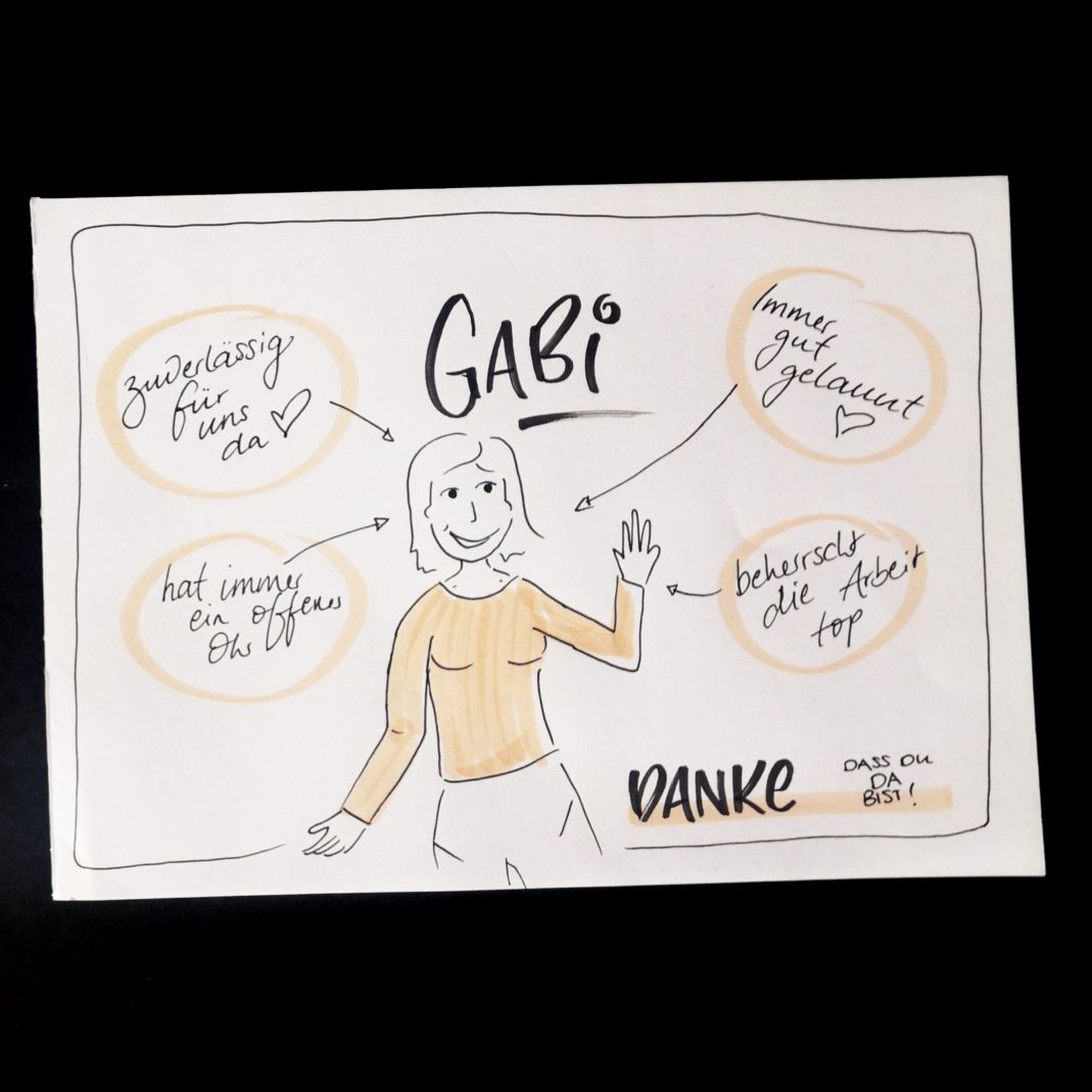 Inzwischen bin ich auch als "visuelle Komplizin" tätig: Ich bringe Inhalte visuell auf den Punkt. Digital oder analog, live gezeichnet im Rahmen einer Veranstaltung oder als Ergänzung Ihrer Unternehmenskommunikation - intern oder nach außen.