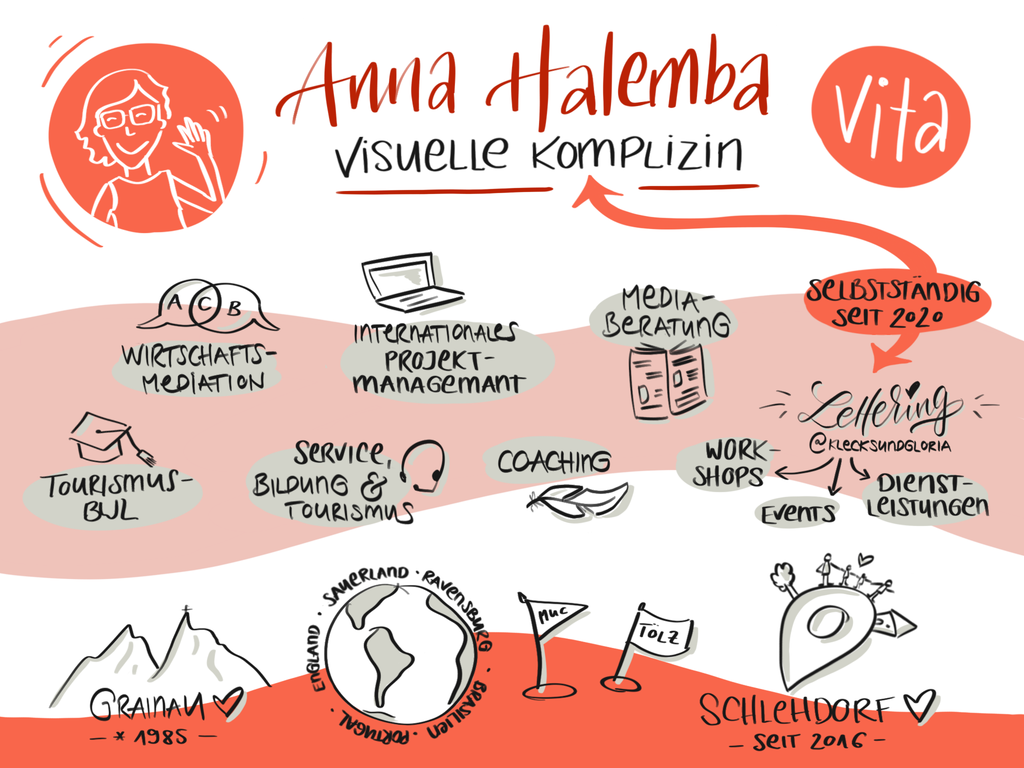 Ich liebe es, Wörter und Daten mit aussagekräftigen Bildern zu unterstreichen. Privat nutze ich Sketchnotes schon lange, um Informationen zu organisieren und besser zu erinnern - im Familienkontext, für Schulungsinhalte, im Ehrenamt.