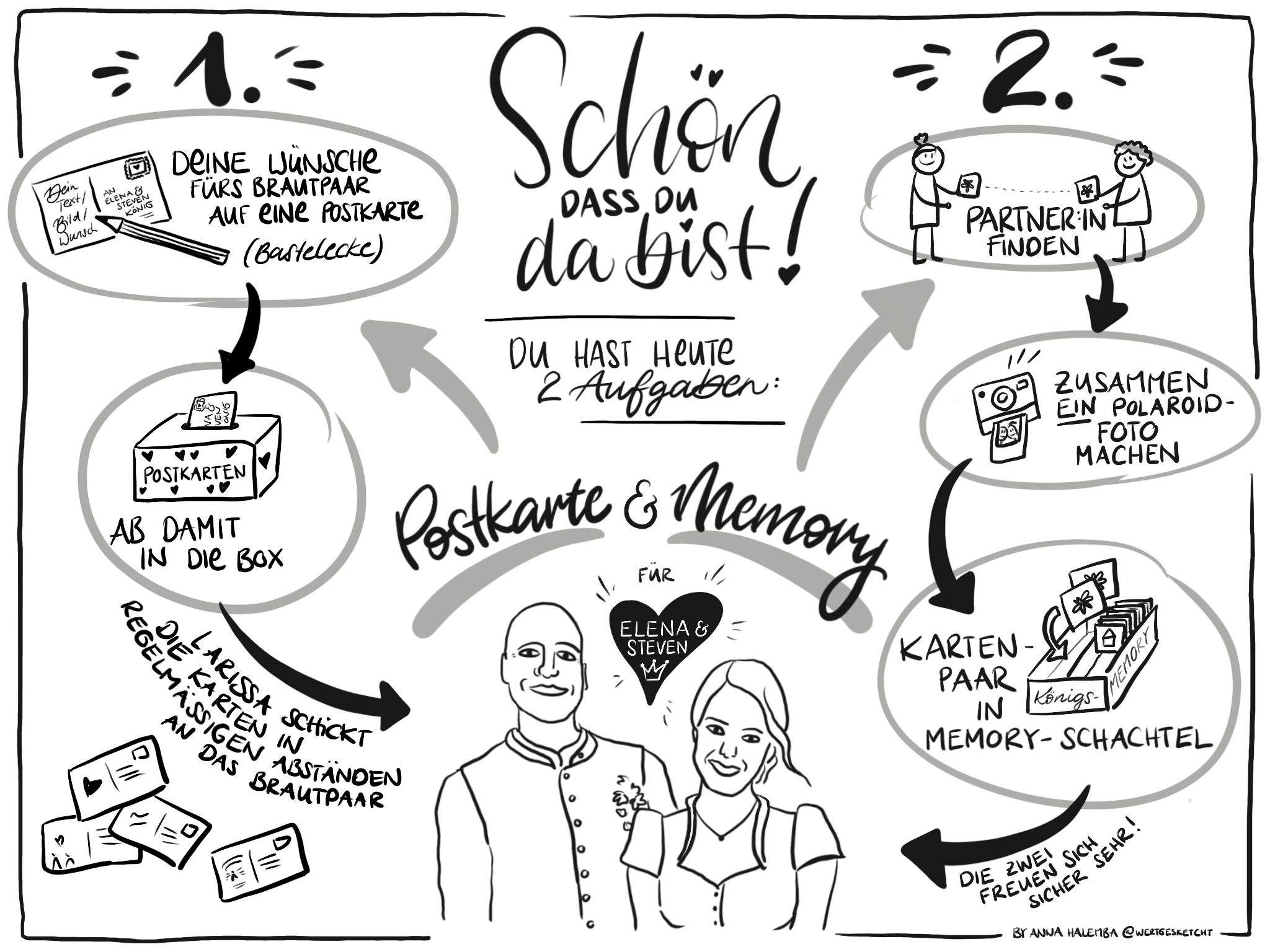 Mit meinen "Wertsketchungen" helfe ich auch Ihnen dabei, komplexe Informationen visuell ansprechend darzustellen und klar, einprägsam und effektiv zu vermitteln. Daneben erstelle ich wertschätzende Mitarbeiter- oder Kundengeschenke oder bereichere ich Ihr Event durch Live-Lettering / -Sketching.